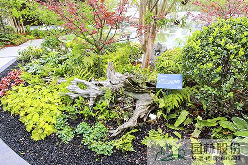 走過(guò)沉水橋廊,岸邊,是清靜淡雅的幽蘭花境,腐木橫臥、蕨類幽幽,枯枝為籬、幽蘭待放,木屑鋪地、玉簪竄出,陶淵明筆下的“幽蘭生前庭,含薰待清風(fēng)。清風(fēng)脫然至,見(jiàn)別蕭艾中”的幽靜生活躍然眼前。