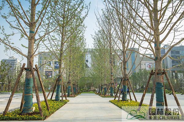 作為徐州城市中心商圈軸線上的一塊“綠寶石”,彭城廣場復(fù)綠工程項(xiàng)目整體景觀以大樹骨架群落為主,應(yīng)用的骨架樹木近500棵,營造出大樹成蔭、花境迎賓的效果。
