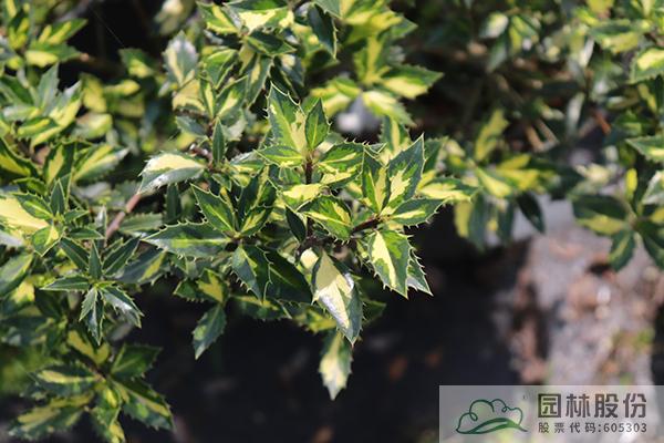 其中,彩葉冬青更是其中的佼佼者。除了果實(shí)可供觀賞外,它們還擁有黃色葉、藍(lán)綠色葉和銀邊葉等彩色葉片。葉形變異也是相當(dāng)豐富,具四角狀,橢圓形,倒卵形等多種形狀;有些品種具有刺狀葉片,而有些則是光滑的葉片;有些品種葉緣還具有波浪狀的起伏。四季景觀分明,在春季,它們的莖腋間會(huì)簇生出一朵朵清新可愛的小花;而在當(dāng)年生的枝條上,則會(huì)抽出亮麗的嫩葉。到了秋季,隨著氣溫的驟降,葉色會(huì)變得更加地明艷;冬季的時(shí)候,在雌性的植株枝條上,則會(huì)掛滿累累的果實(shí)。這些不同的形態(tài)和色彩變化,使得彩葉冬青在不同的時(shí)間和空間中呈現(xiàn)出不同的姿態(tài)、色彩與意境,從而提升了冬青品種的觀賞價(jià)值,成為園林景觀中重要的觀葉植物。