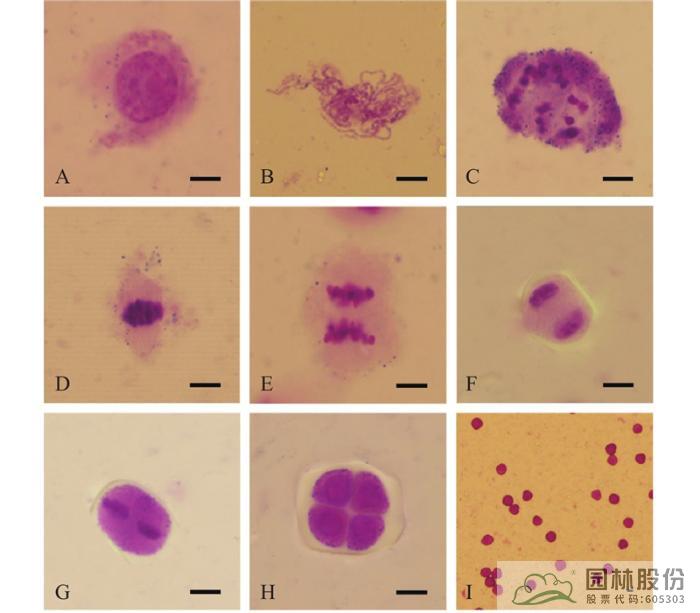 圖 1 繡球‘無(wú)盡夏’小孢子母細(xì)胞減數(shù)分裂過(guò)程