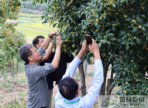 參會(huì)代表在杭州園林股份國(guó)家桂花種質(zhì)資源庫(kù)合影